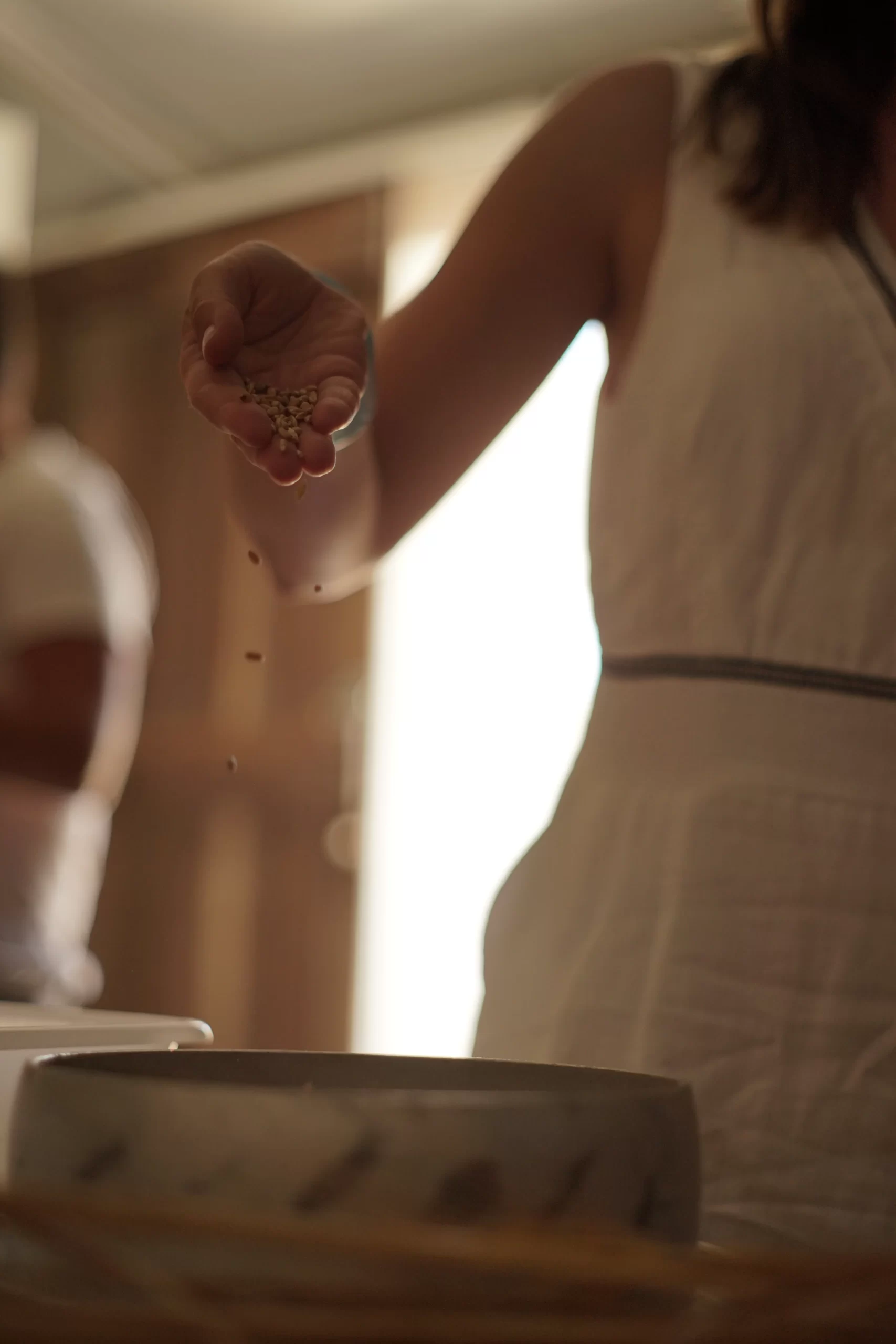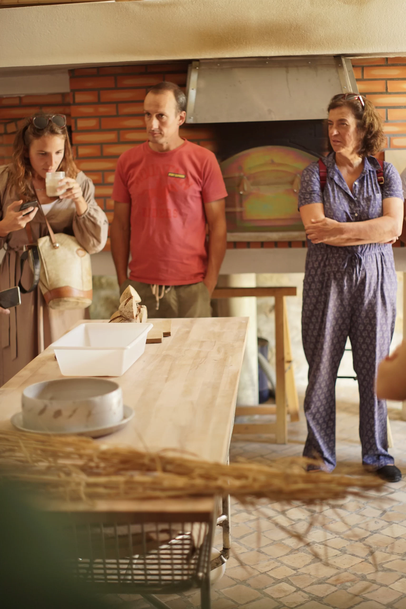 A segunda parte da manhã foi passada nas instalações do senhor Celso Santos, a saber mais sobre o trigo barbela e produção de pão de forma tradicional.